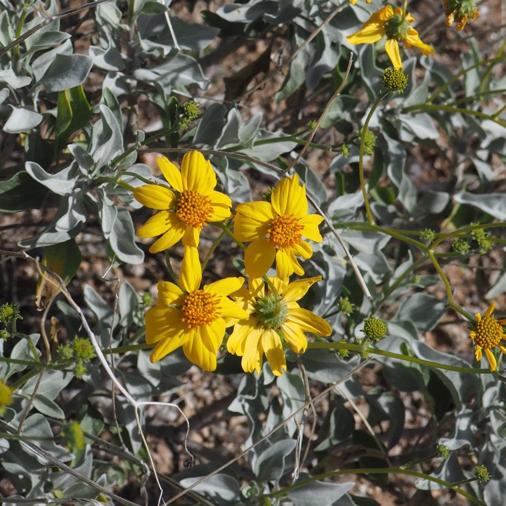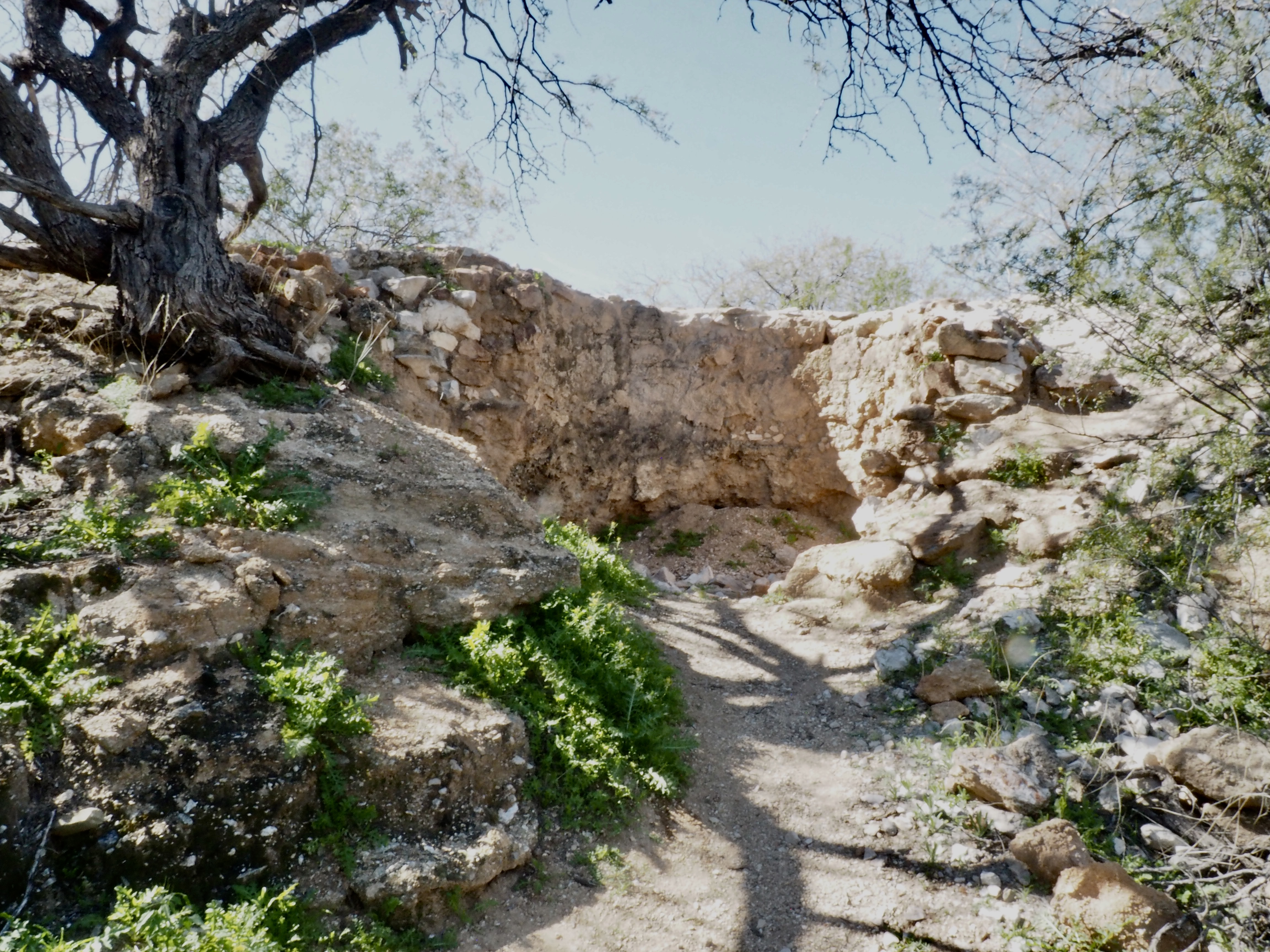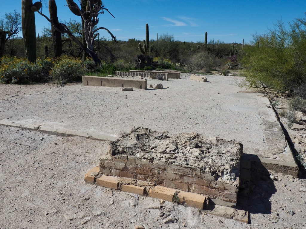 The desert was looking especially green and several types of yellow flowers sprinkled the trail side. We followed the Cactus Forest Trail, enjoying the wide, flat path. Eventually we reached the remains of the Cactus Shack. Originally a storage shed used by the Civilian Conservation Corp (CCC) in the 1930s, it was converted into a ranger residence in 1936.