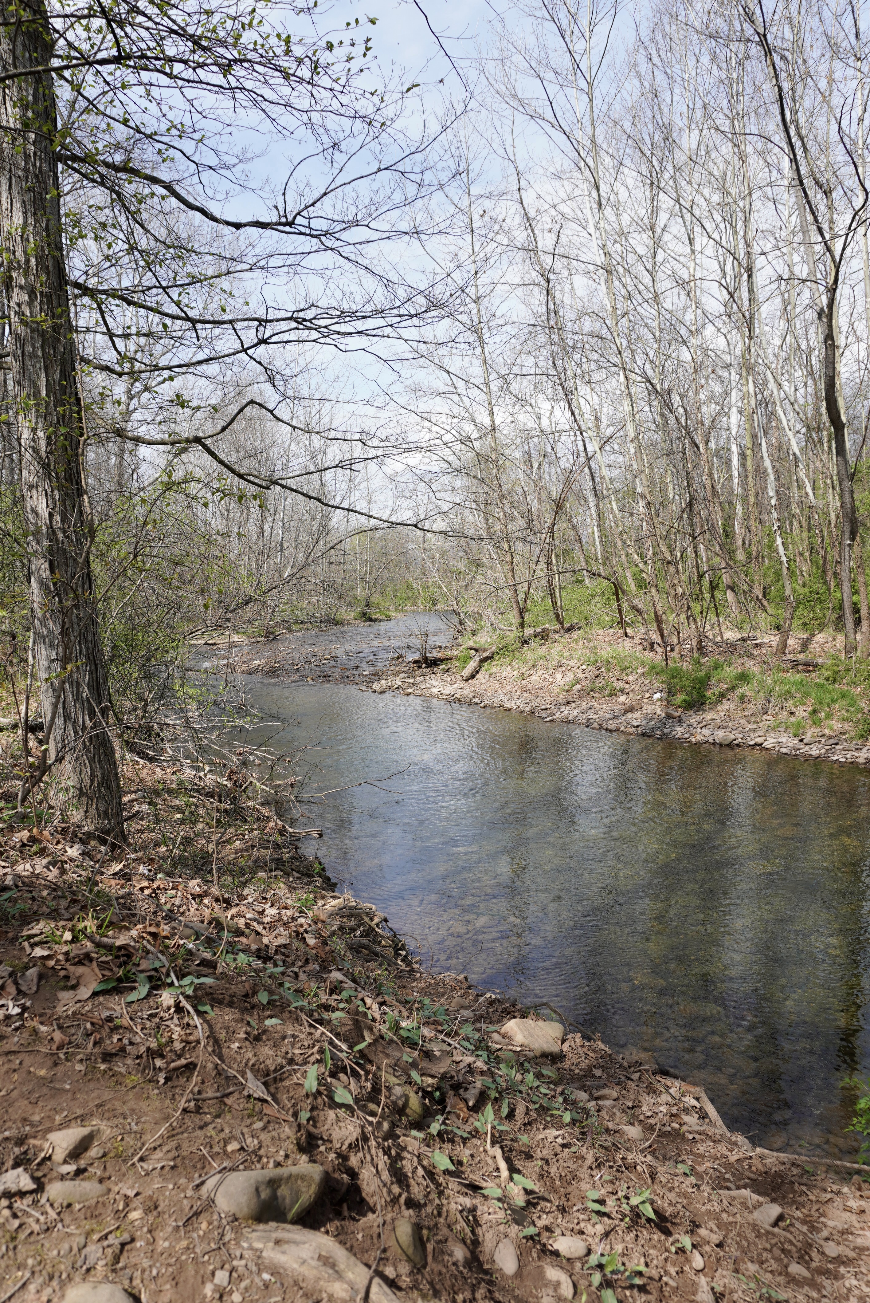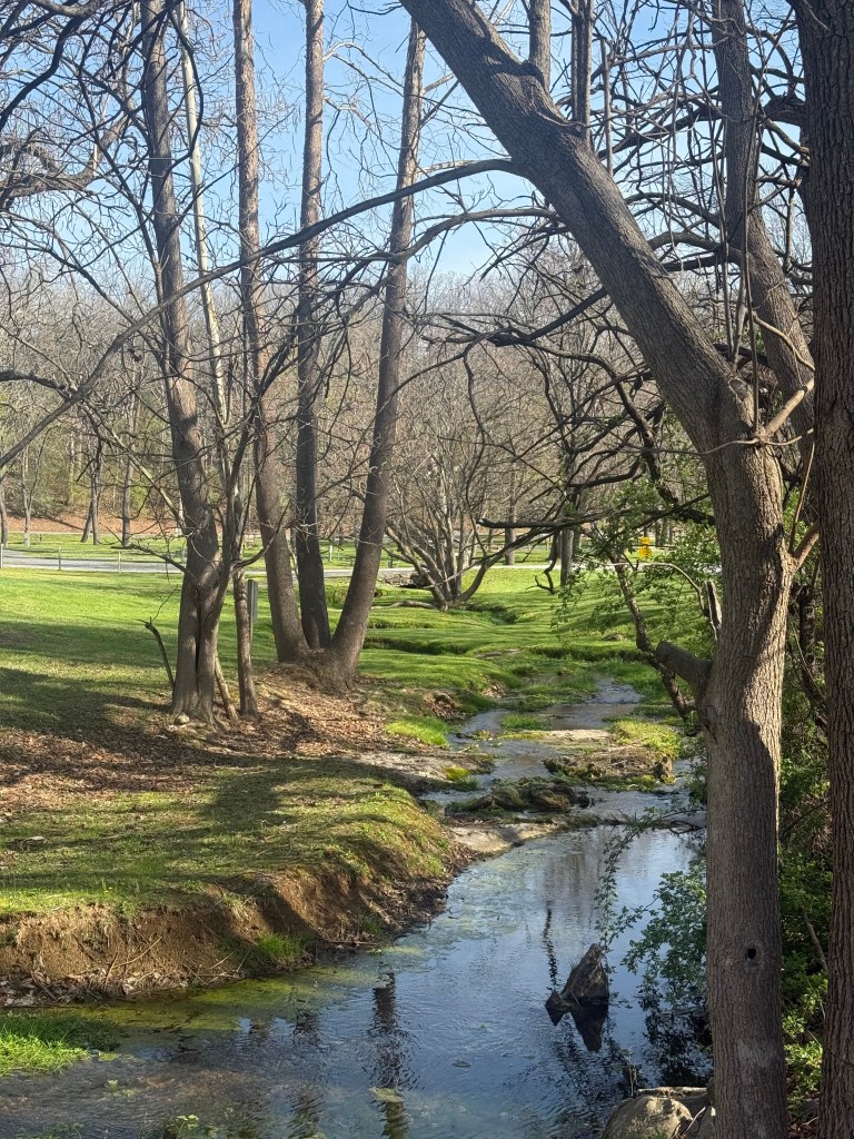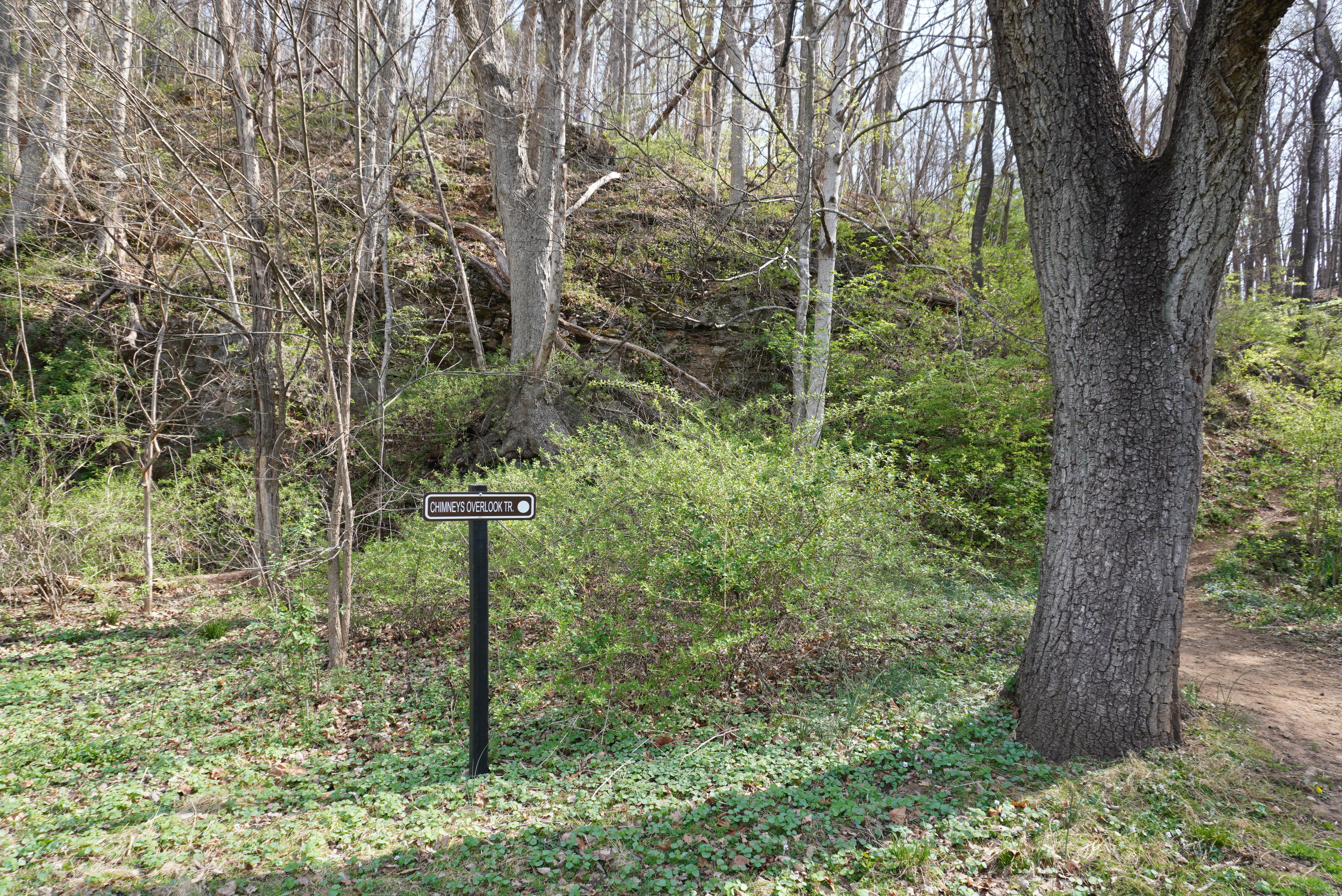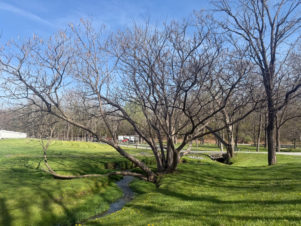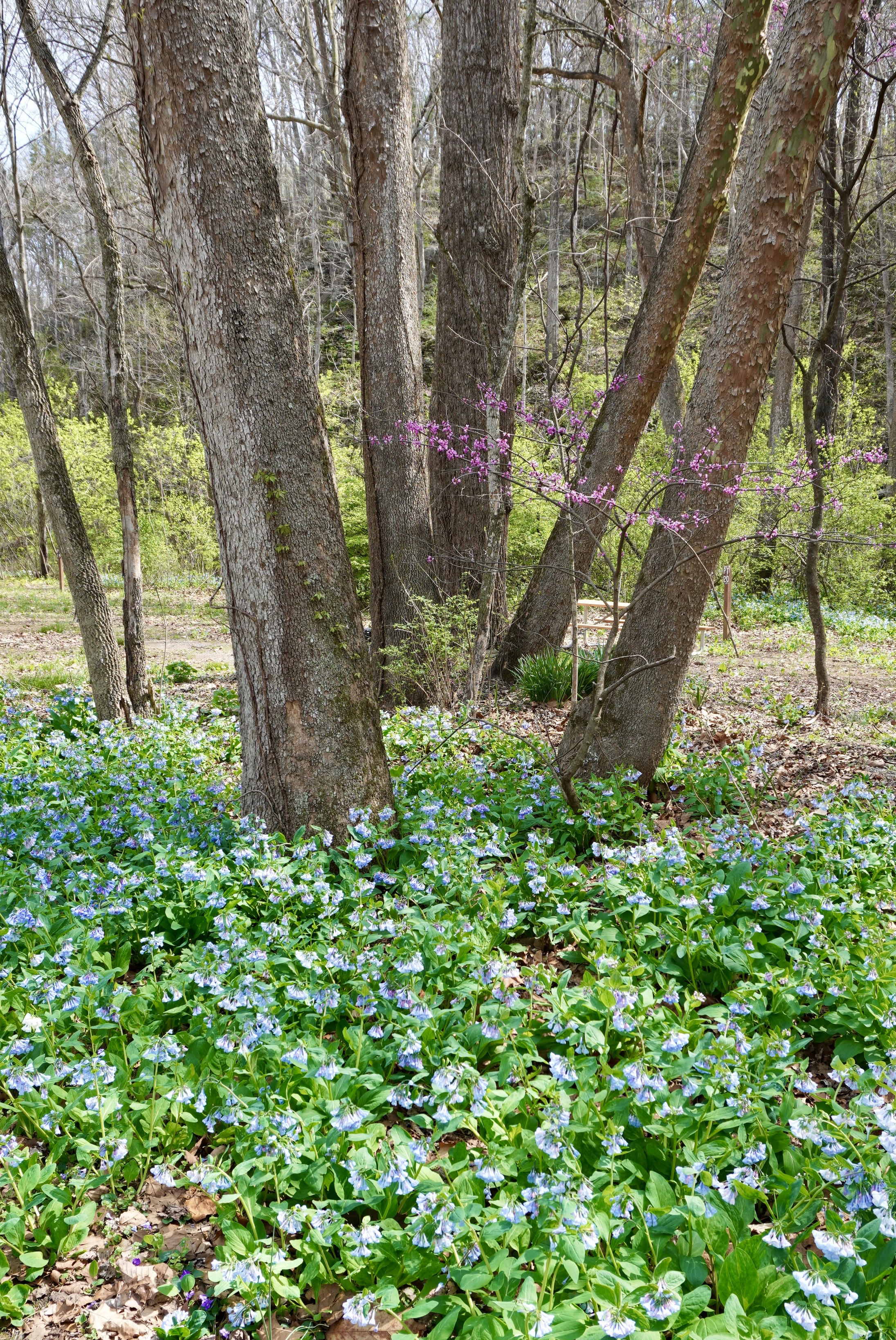 Fortunately, the campground is closed for the season until May 1st., so we nearly had the 2.5-miles of walking trails to ourselves. The gentle, flat River Trail gave us just a glimpse of the river. The bluebells were the real stars. Another day or two and they will be in full bloom.