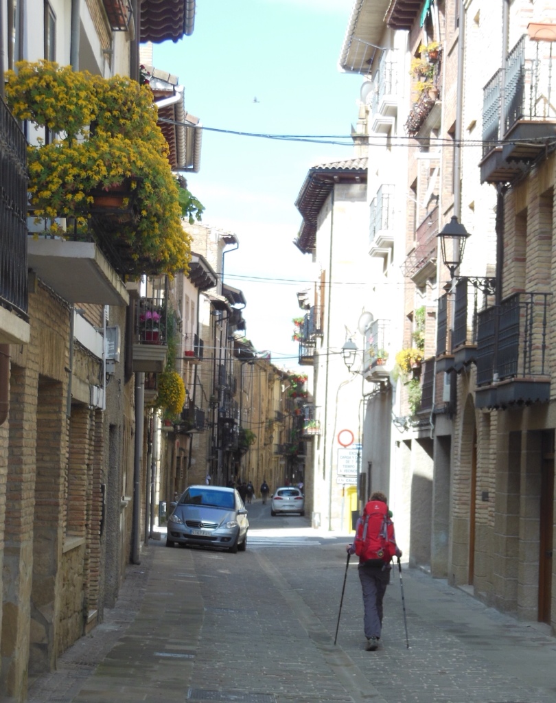 Several quaint villages and more hills marked our 12-mile trek from Uterga to Lorca today. Although we shared a bunk room with 13 friendly fellow pilgrims, we had trouble relaxing and awoke very tired. A great breakfast and coffee restored us, though. The cost for breakfast and sandwiches for later: 10 euro, about $13!
