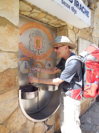 We enjoyed an extended Happy Hour with Gert, a German from outside Hamburg. Struggling with blisters of his own, he had a suggestion for me as he filled my glass with vino tinto (red wine). “Sue, I get you drunk…the foot will hurt no more!” Buen Camino!